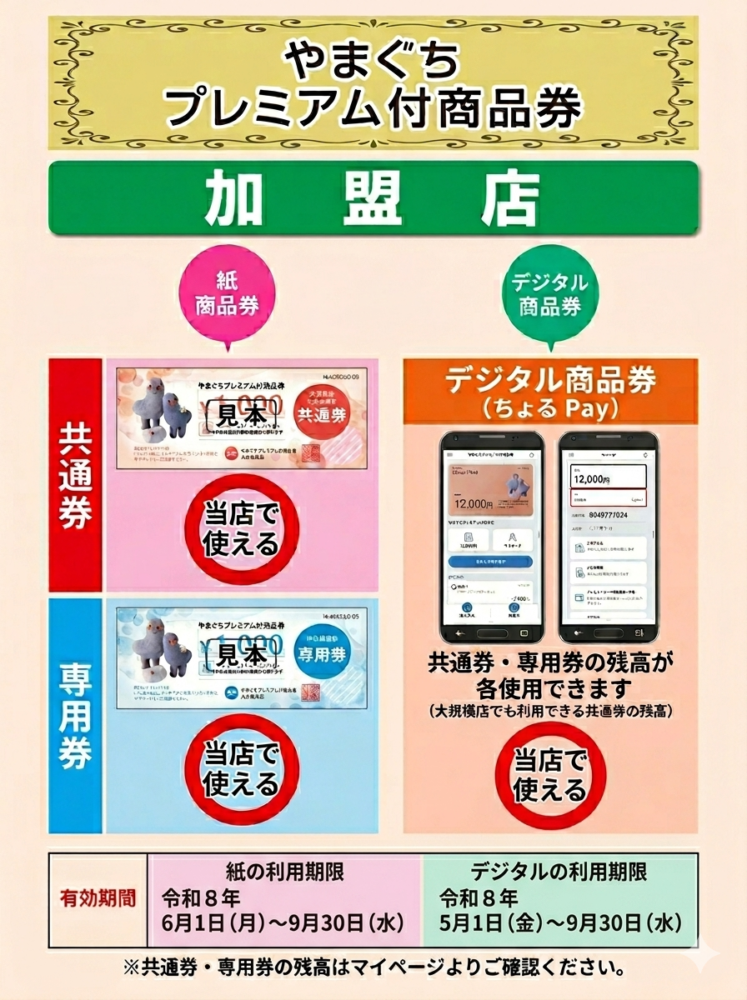 やまぐちプレミアム付商品券 2026 4/29 News 2026年4月29日 当店でご利用可能となっております。 是非、ご利用ください。 デジタル商品券のご利用開始は 5月1日~9月30日まで 紙の商品券のご利用開始は 6月1日~9月30日 となっております。 お間違いのないように!!! News シェアしてね! URLをコピーしました! くせ毛のメカニズム